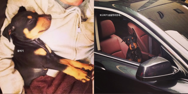 공개된 사진에는 배정남의 반려견 벨의 어린시절이 담겼다. 배정남의 품에 안겨 평안하게 잠든 모습. 이어 배정남은 또 다른 벨의 사진을 올리며 "보고파가 숨을 못쉬것네.."라고 그리움을 전했다.