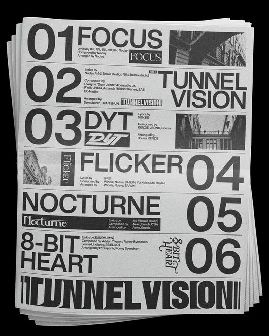 The title track TUNNEL VISION leads a six-song lineup that highlights both global production and the members’ artistic input. The album includes Focus, DYT, Flicker, Nocturne, and 8-BIT HEART, highlighting ITZY’s sonic range from house-driven beats to melodic pop sounds.