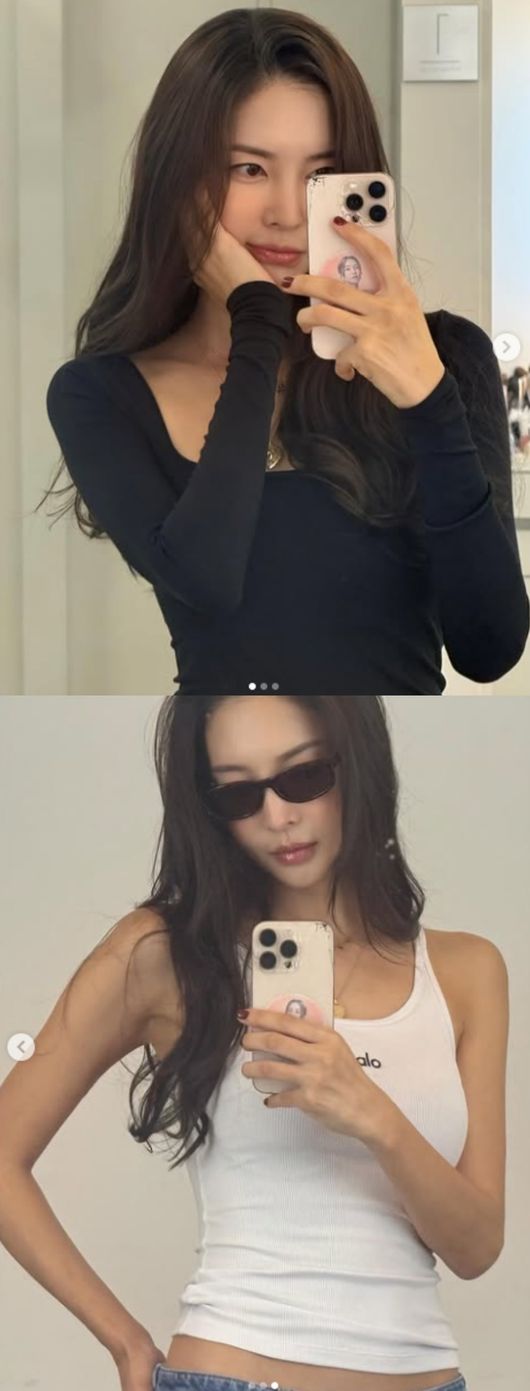 사진 속 김윤지는 꽃받침 포즈로 거울 셀카를 찍고 있는 모습이 담겼다. 이어 그는 청바지에 민소매를 입고서 건강한 라인을 드러내기도 했다.