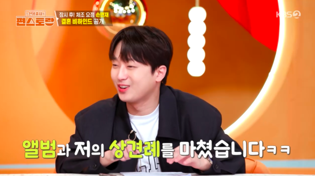 그러자 이찬원은 “얼마 전에 상견례를 마쳤구요”라며 “앨범과 저의 상견례를 마쳤다”라고 너스레를 떨었다. 이를 들은 이연복은 “‘얼마 전에 이제 상견례를 마쳤구요’ 이거 예고편으로 쓰면 되겠다”라고 말해 웃음을 자아냈다.