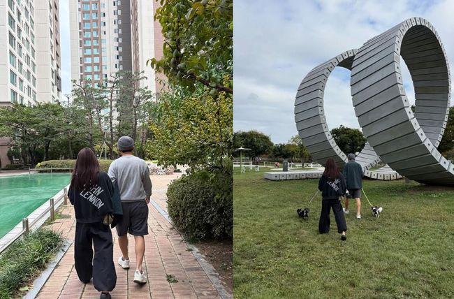 누리꾼들은 “행복이 뒷모습에도 보인다”, “강아지까지 넷이 산책하니 더 가족 같네요”, “벌써부터 2세 기다려진다” 등의 반응을 전했다.