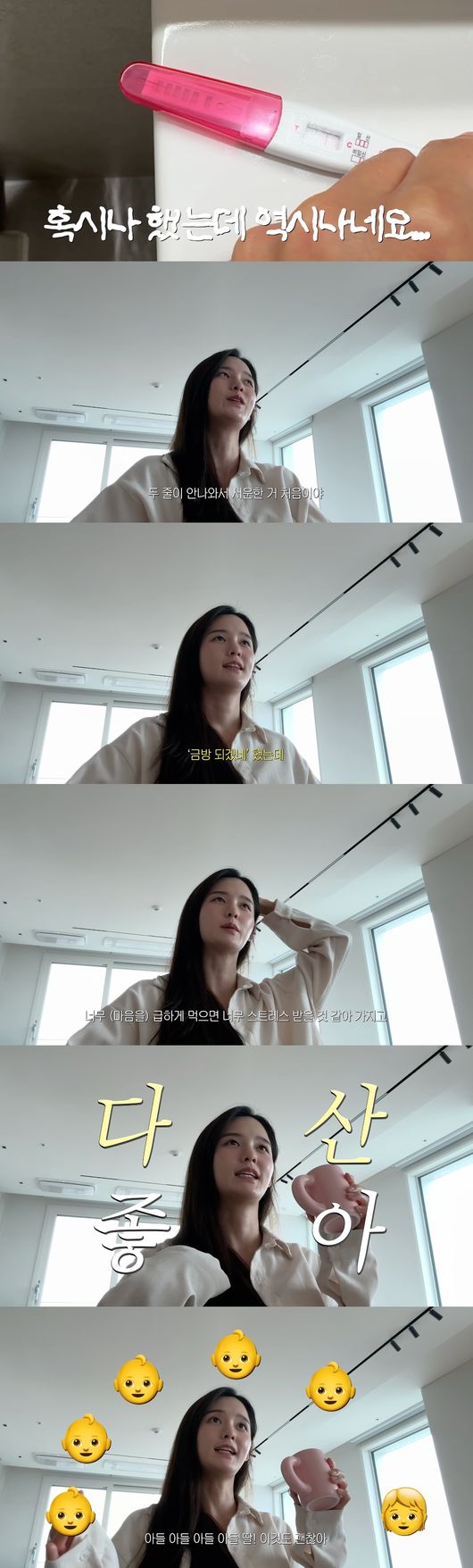 배우 남보라가 임신테스트기 결과에 실망한 모습을 보였다.