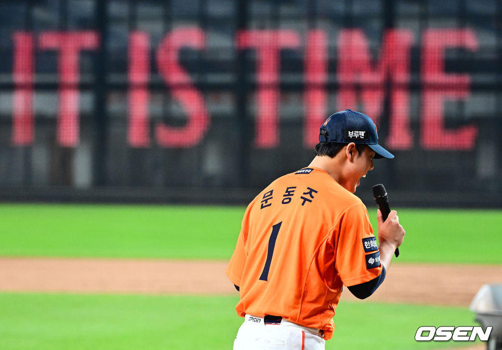 플레이오프 1차전 MVP에 선정된 한화 문동주가 인터뷰를 하고 있다. 2025.10.18 /jpnews@osen.co.kr