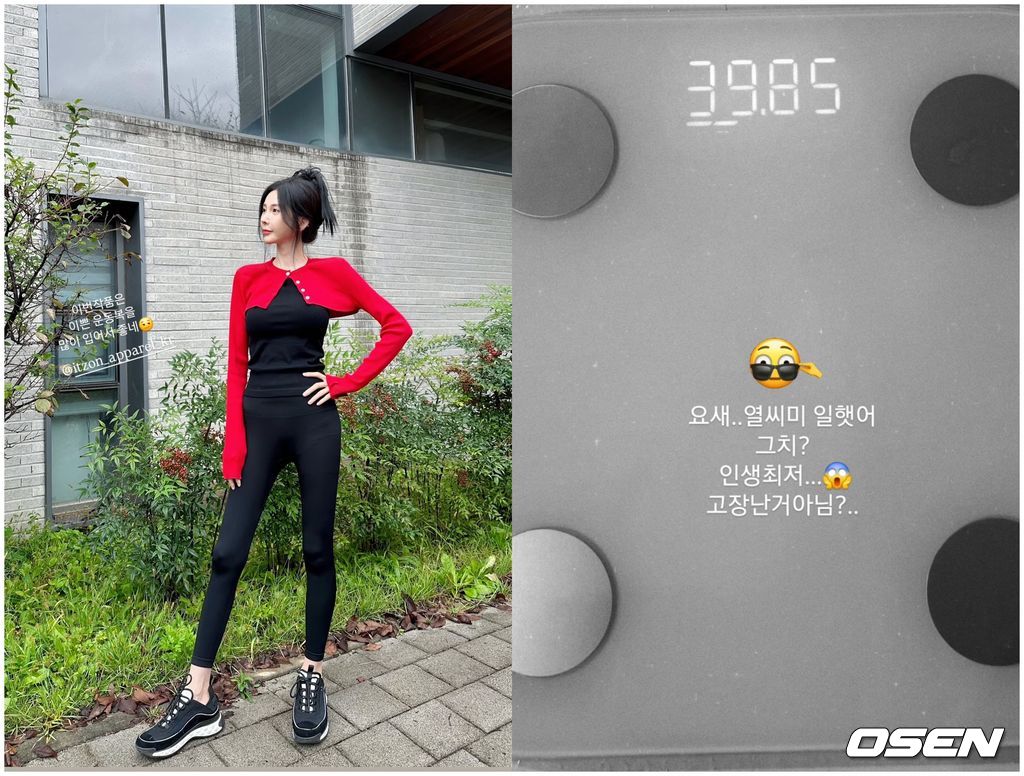 18일 배우 신주아는 자신의 소셜 계정에 2장의 사진을 공개했다. 하나는 운동복을 착용한 사진, 하나는 전자 몸무게를 인증한 사진이었다.