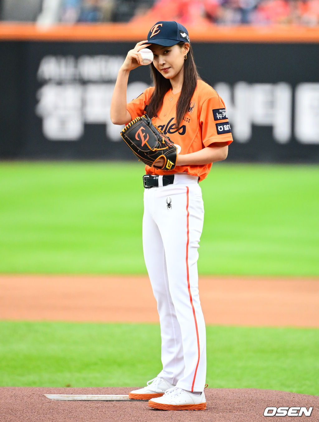 경기에 앞서 가수 유리가 시구를 하고 있다. 2025.10.18 /jpnews@osen.co.kr
