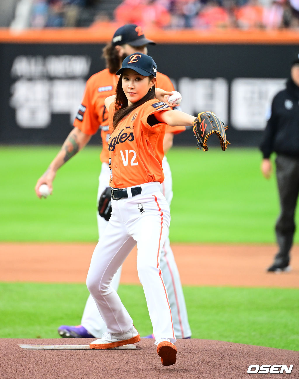경기에 앞서 가수 유리가 시구를 하고 있다. 2025.10.18 /jpnews@osen.co.kr