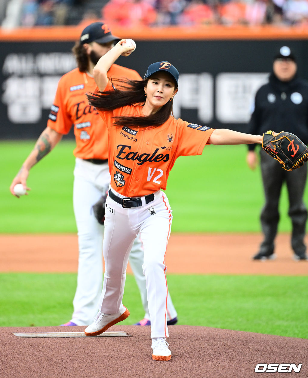 경기에 앞서 가수 유리가 시구를 하고 있다. 2025.10.18 /jpnews@osen.co.kr