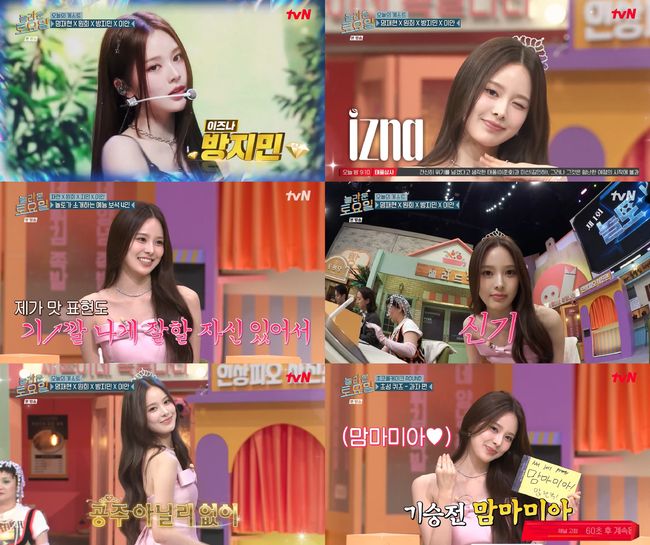 또 방지민은 과자 초성 퀴즈의 정답을 초스피드로 맞힌 후 신곡 'Mamma Mia' 퍼포먼스를 파워풀하게 선보였다. 여기에 그치지 않고 음식 맛을 볼 때마다 '맘마미아' 감탄사를 빼놓지 않는 등 신곡 홍보 요정으로도 맹활약했다.