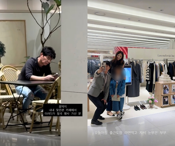 이뿐 아니라 19일에도 서하얀은 임창정이 팝업 행사장에 온 걸 인증하며 “오늘 아침 출근도장 라면 먹고 자서 눈부은 부부”라고 남편의 사랑꾼 면모를 보여줬다.