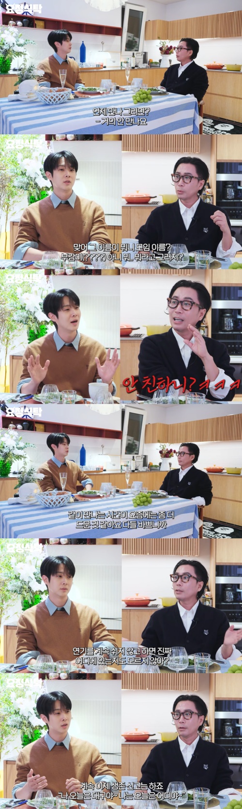 최우식은 "그냥 친구들인데 어떻게 하다보니가 모임명도 생겨버리고 막 이렇게 됐다"며 "그냥 친구들끼리 예를 들면 뭐 한명이 누가 너무 좋아서 또 누굴 데리고 오면 또 같이 보고 같이 만난다. 그런 시간이 요즘에는 좀 더 드문 것 같다. 다들 바쁘니까"라고 말했다.