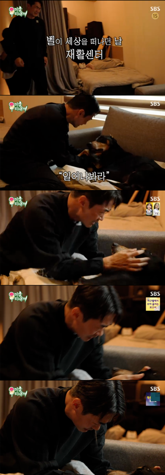 19일 전파를 탄 SBS ‘미운 우리 새끼’(이하 ‘미우새’)에서는 얼마 전 무지개다리를 건넌 반려견 벨과 배정남이 이별하는 순간이 공개됐다.