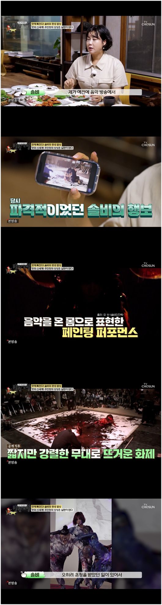 솔비는 화가로 도전하면서 음악 방송에서 행위 예술을 선보였다. 솔비는 “제가 2017년에 음악 방송에서 그립을 그리며 노래를 부르는 무대를 보였다”라면서 “여성으로 받은 상처와 차별을 저만의 아픔으로 승화시켜 보인 무대였다. 엄청난 비판을 받았다. 미술관에서 할 일이지, 왜 음악 방송에서 하냐고 했다”라며 당당하게 말했다.