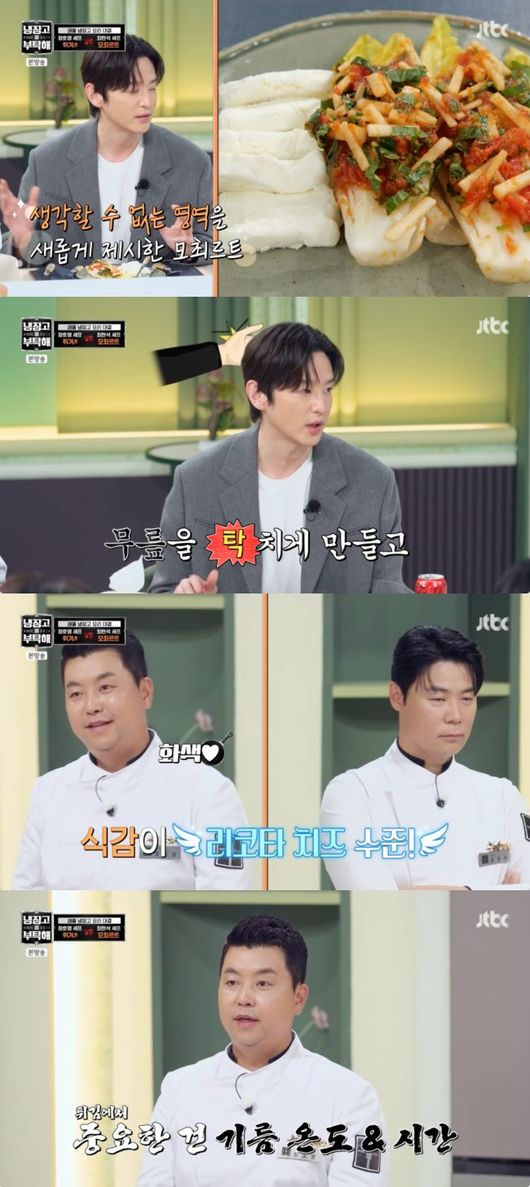 먼저 권율은 최현석이 만든 엔다이브와 리코타 치즈를 활용한 두부김치를 맛 봤다. 권율은 “정말 천재가 맞는 것 같다. 두부 김치를 만들어주신다고 했을 때 내가 아는 것에서 벗어날 수 엉ㅂㅅ었다. 그런 것들이 생각나지 않는 조합을 새롭게 제시해주셔서 놀랍다. 무릎을 탁 치게 만들고, 뒤통수도 탁 친다. 레스토랑에 있으면 꼭 시킬 것 같다”라고 말했다.