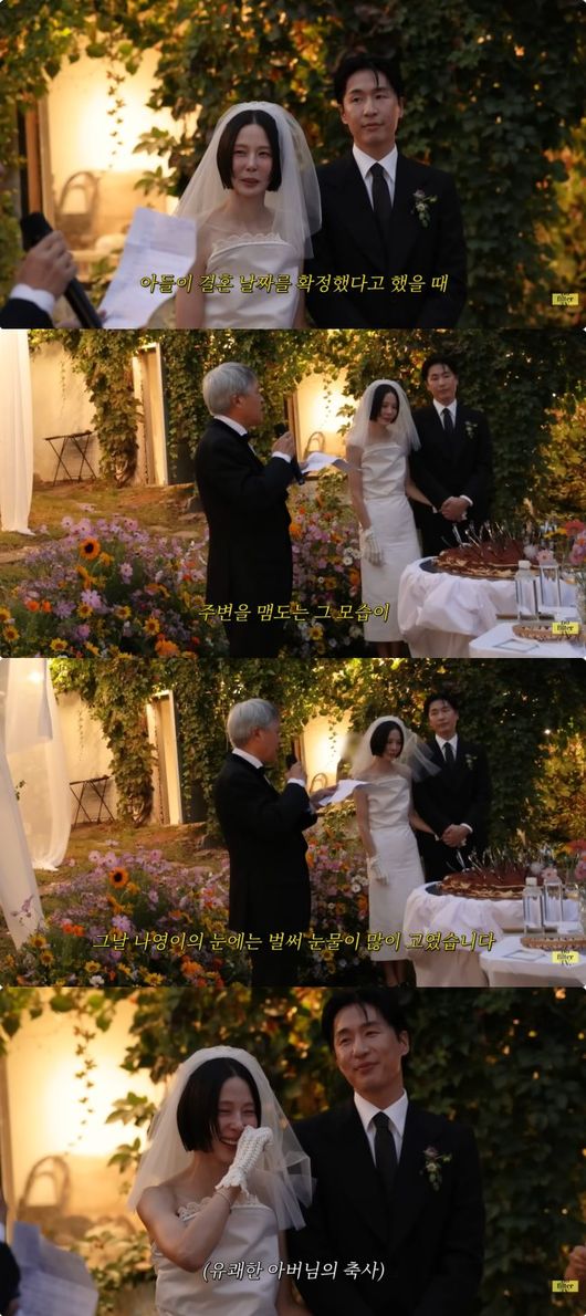 다소 떨리는 목소리로 축사를 하는 모습에 마이큐의 어머니는 “울지마”라고 외치며 유쾌한 분위기를 만들기도 했다. 내내 눈물을 흘리던 김나영도 시어머니의 응원에 유쾌하게 웃기도 했다.