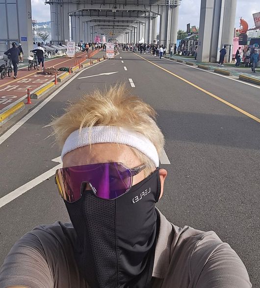 공개된 사진은 탈색된 머리를 위로 세운 독특한 헤어스타일을 한 이상민의 셀카. 이상민은 머리에는 헤어밴드를 착용하고, 눈에는 선글라스, 입가에는 러닝용 안면 가리개를 착용해 완벽하게 무장한 모습이었다. 특히 한강 잠수교를 배경으로 활기차게 달리는 모습은 늦깎이 '예비 아빠'로서 체력 관리에 집중하는 그의 남다른 의지를 짐작하게 했다.
