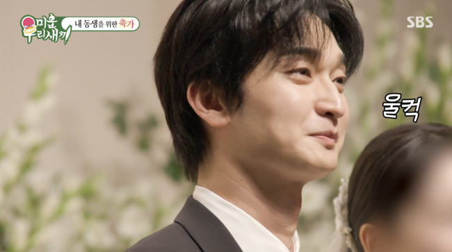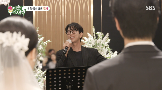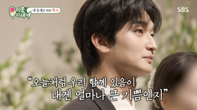 배우 윤현민이 ‘유승호 닮은꼴’로 화제를 모았던 이복동생의 결혼식에서 진심 어린 축가로 감동을 선사했다.