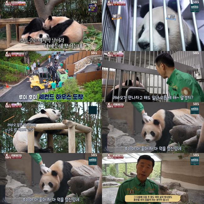 드디어 찾아온 D-Day. 두 마리는 20m 정도 떨어진 사육장으로 이동하는 첫 독립 훈련을 무사히 마쳤다. 루이·후이는 잠시의 망설임은 있었지만, 용감하게 첫걸음을 내딛었다. 방송 이후 시청자들은 “기특하고 이쁘다”, “나중에 어떻게 보내나”는 반응을 보였다.