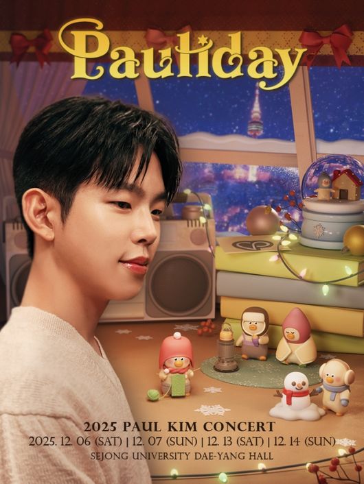 폴킴은 오는 12월 서울 세종대학교 대양홀에서 ‘2025 PAUL KIM CONCERT-Pauliday(폴리데이)’를 펼친다. 12월 6~7일, 13~14일, 총 4회에 걸쳐 관객과 따뜻한 연말을 보낸다. 소속사 와이예스엔터테인먼트는 콘서트 공식 포스터를 공개하고 본격적인 카운트다운을 알렸다.