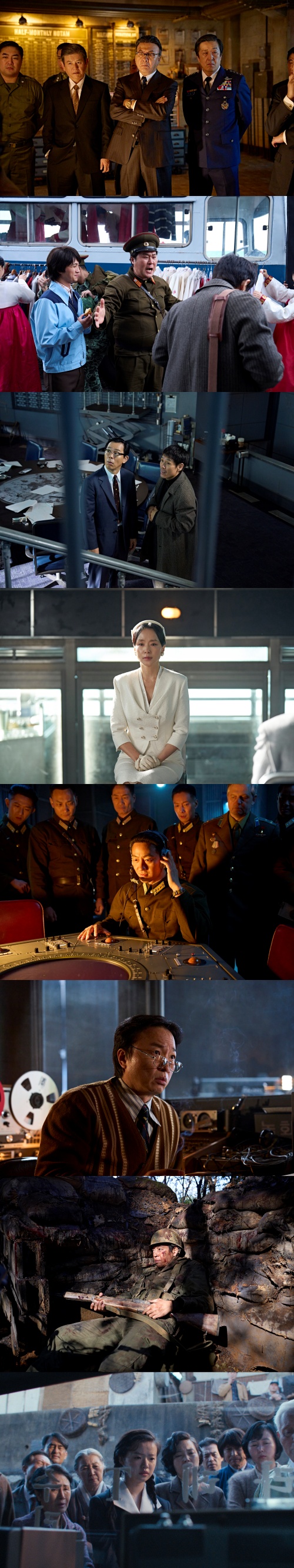 공개된 신스틸러 스틸은 등장만으로도 화면을 장악하며 '굿뉴스'를 보는 재미를 더한 다채로운 배우들의 모습으로 눈길을 사로잡는다. 청와대 실장 갑섭 역의 박영규와 김포공항을 평양공항으로 둔갑시키기 위해 현장을 진두지휘하며 큰 웃음을 안겨준 감독 역의 윤경호, 국방부장관 역의 최덕문, 공군참모총장 역의 현봉식의 모습은 무슨 수를 써서라도 비행기를 착륙시키고자 하는 사람들의 긴박감을 생생하게 전한다.