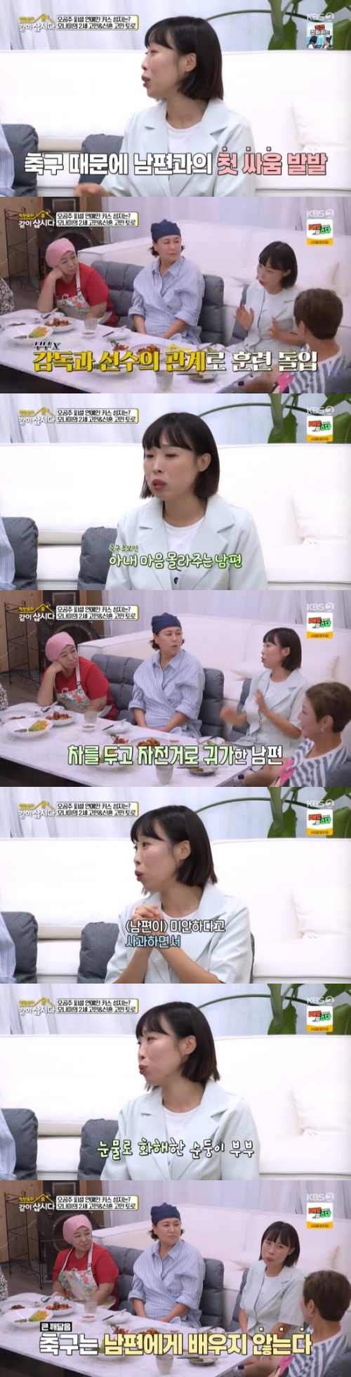 코미디언 오나미가 축구선수 남편과 첫 부부싸움을 공개했다.