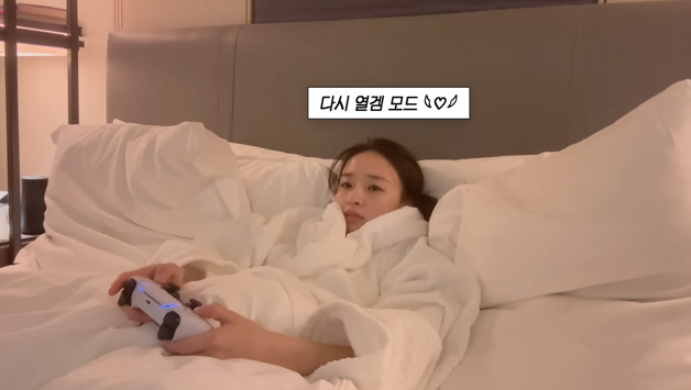 다시 호텔로 돌아온 손연재는 가져온 플레이스테이션으로 게임을 했고, 룸서비스로 랍스타에 치킨을 주문해 먹었다. 그 뒤로도 새벽까지 게임하다 취침한 손연재는 "잘 놀다가 갑니다. 눈도 부었고요. 너무 잘 잤어요. 다시 육아 복귀"라며 "즐거웠다 호캉스"라고 인사했다.