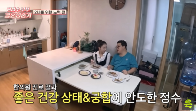 원진서는 "난 소음인이고 오빠는 소양인이잖아. 내가 인터넷에 찾아봤다. 진짜 궁합이 잘 맞는거래"라고 말했고, 윤정수는 "(건강)점수가 높다고 하니까 앞으로 우리의 출산생활에 좀 더 낫겠다 싶은 안도감은 있다"고 털어놨다. 이에 원진서는 "그래도 더 끌어올려야될것 같다"고 의욕을 드러냈다.