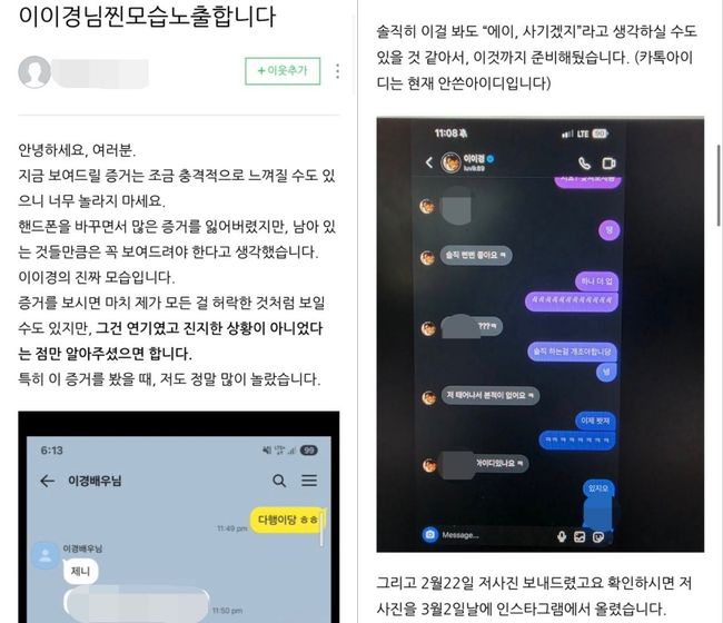 심지어 A씨가 이미 이이경 측에 관련 내용으로 금전을 요구했다는 주장까지 등장했다. 소속사로 짜깁기한 대화로 금전을 요구하는 협박 요구가 있었고, 이에 글쓴이가 허위사실에 대해 사과 메일까지 보냈다는 것이다. 덩달아 최초 폭로글이 삭제되며 사안은 해프닝으로 일단락되는 듯 했다.