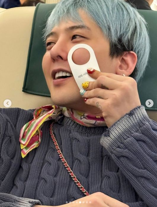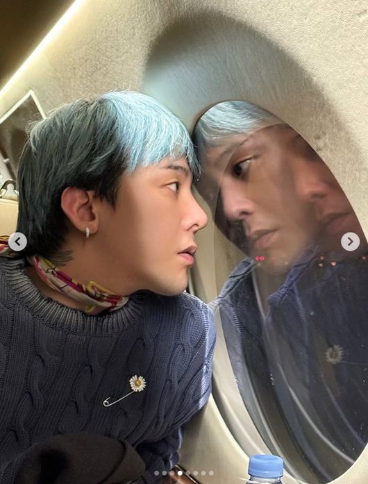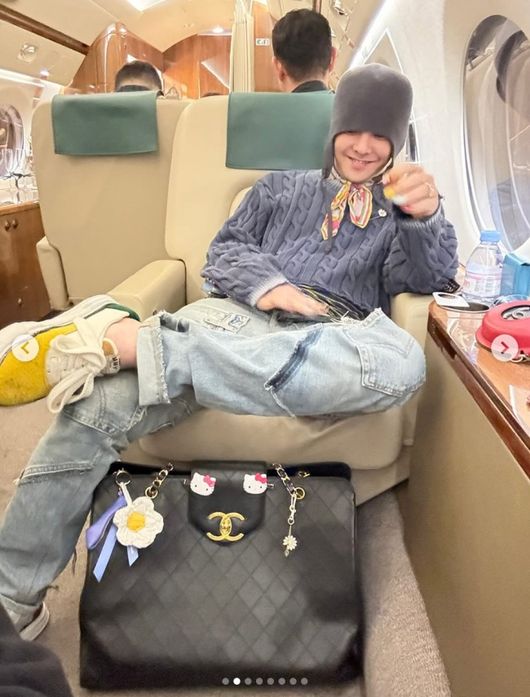 공개된 사진에는 전세기를 타고 이동 중인 지드래곤의 모습이 담겨 있었다. 지드래곤은 공연을 마치고 이동 중인 듯 환하게 웃으면서 전세기에 탑승해 있었다. 아기자기한 액세서리로 꾸민 명품 가방을 앞에 두고 다리를 꼬고 앉아서 장난스러운 미소를 지었다.