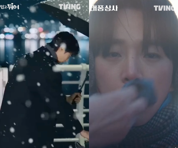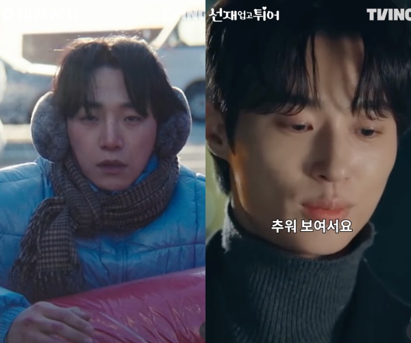 공개된 영상 속에는 '태풍상사' 이준호와 '선재업고튀어' 변우석의 모습이 담겨 있다. 두 사람의 드라마 장면이 교차 편집된 가운데, 극 중 한겨울 바닷가에서 원단을 지키려고 밤새는 태풍(이준호 분)을 향해 선재(변우석 분)가 "추워 보여서요. 왜 이러고 있어요?"라며 콧물까지 닦아줘 웃음을 자아낸다.