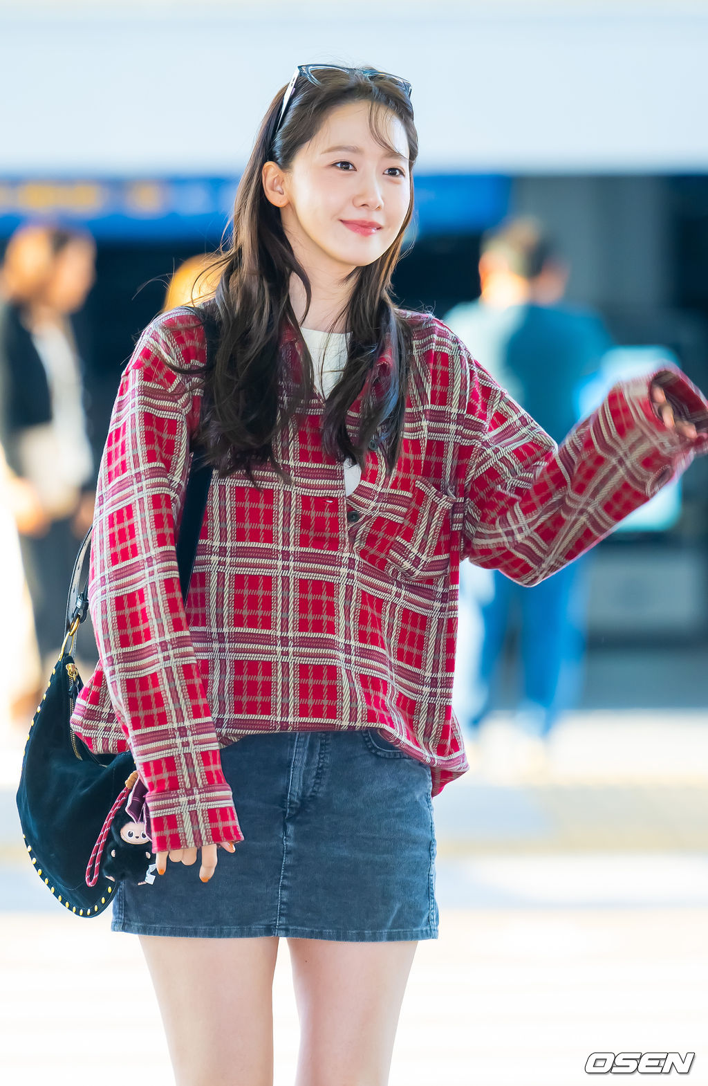 배우 임윤아가 출국길에 포즈를 취하고 있다. 2025.10.21 / rumi@osen.co.kr