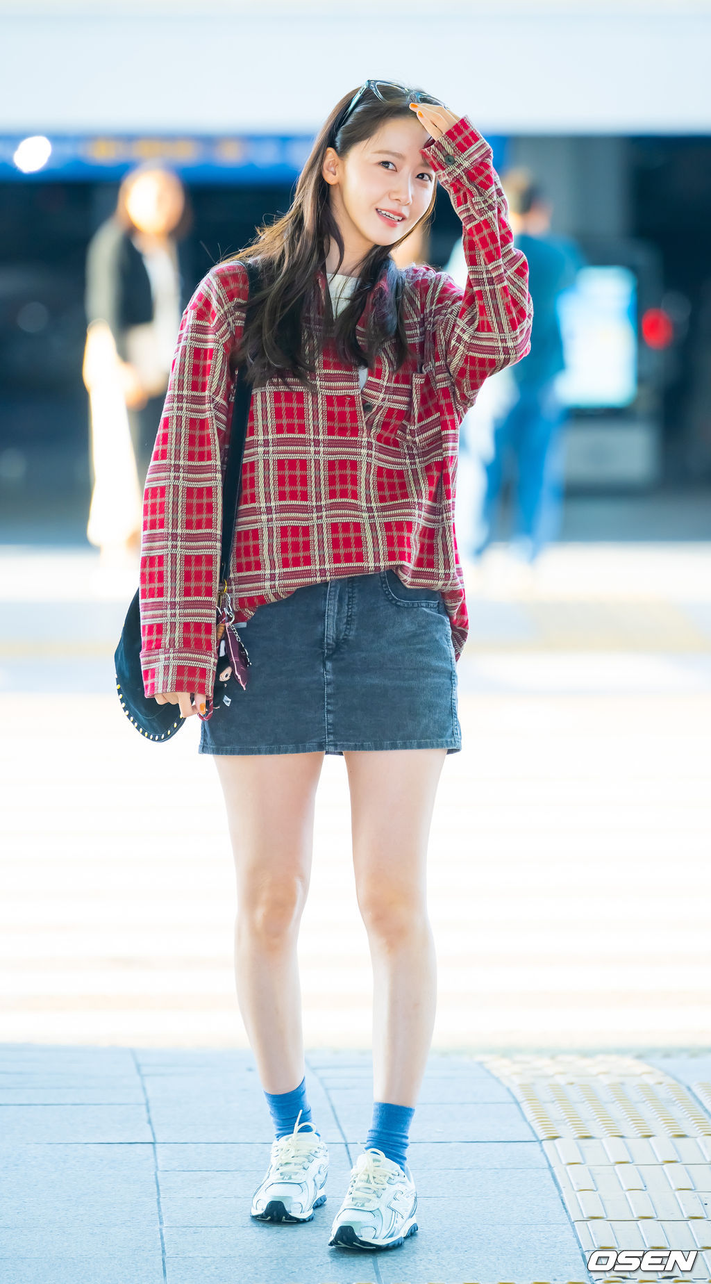 배우 임윤아가 출국길에 포즈를 취하고 있다. 2025.10.21 / rumi@osen.co.kr