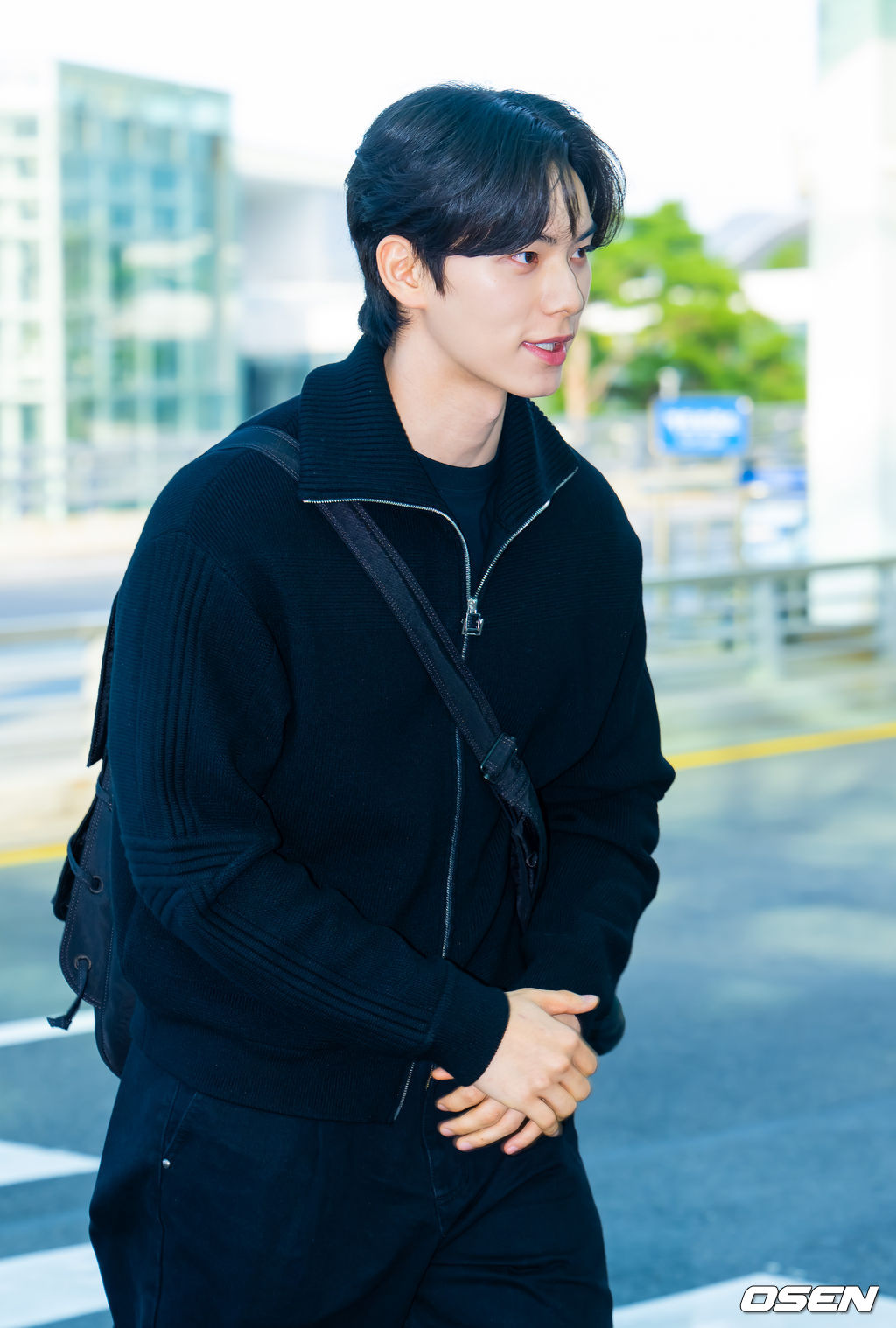 배우 이채민이 출국길에 포즈를 취하고 있다. 2025.10.21 / rumi@osen.co.kr