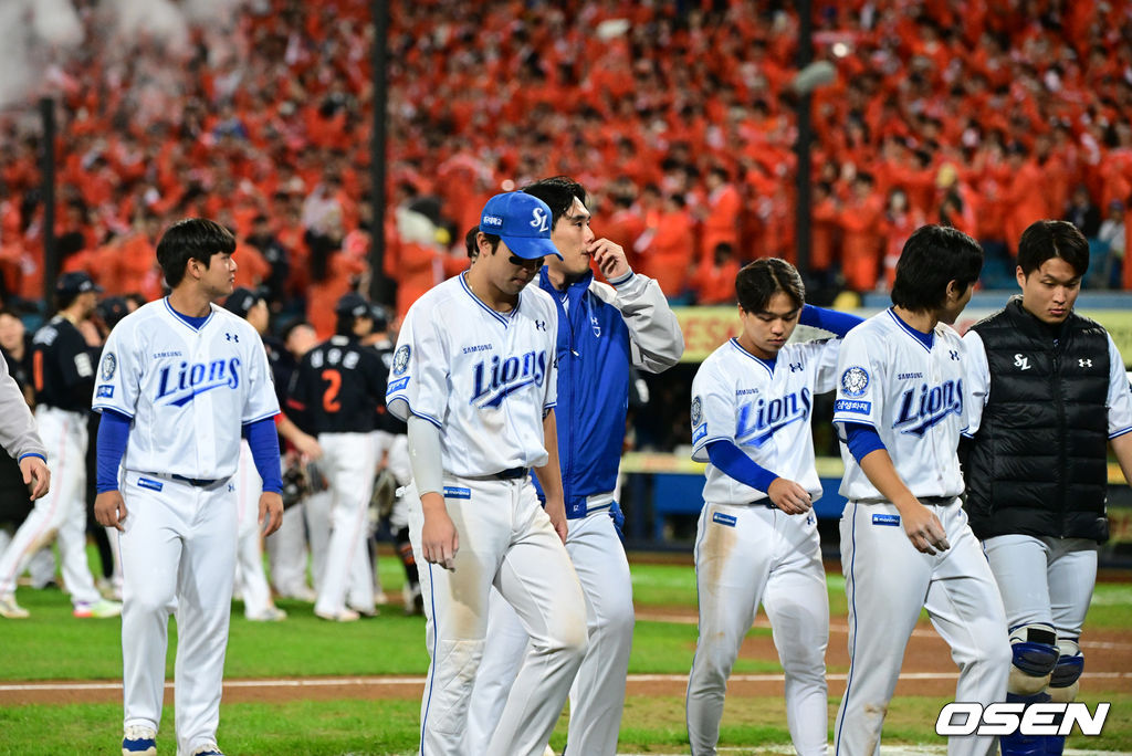 삼성이 패배를 아쉬워하고 있다. 2025.10.21 /cej@osen.co.kr