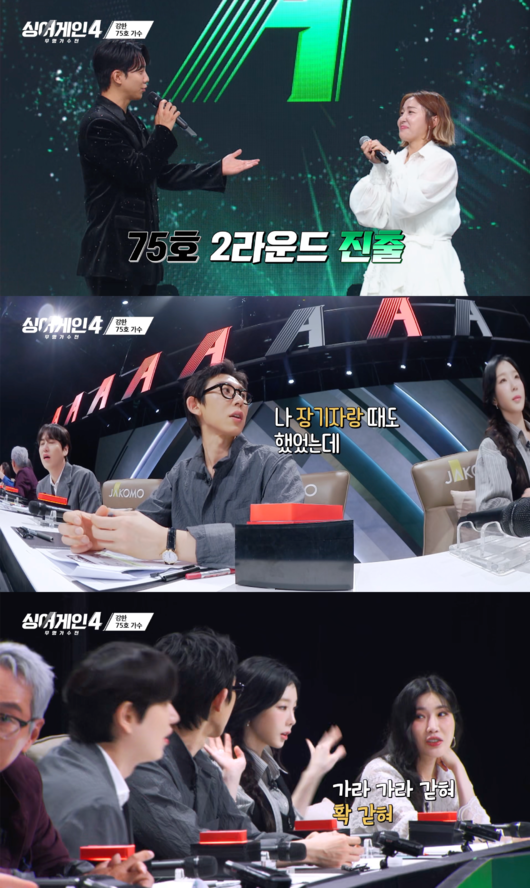 75호 가수는 호응을 유도하며 노래를 불렀고, 도입부가 시작되자마자 심사위원들은 너무나 아는 곡이기에 충격을 받은 모습을 보였다. 대기실에서 무대를 지켜보던 출연자들 역시 함께 노래를 즐기는 모습이었다.