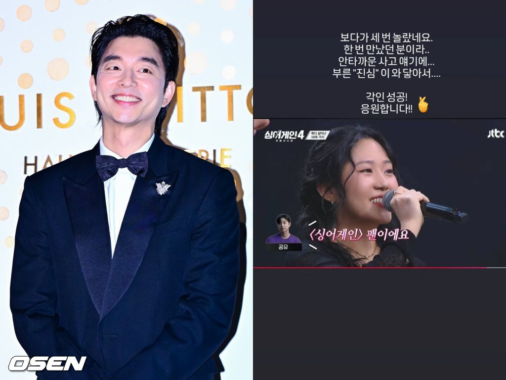21일 공유는 개인 SNS를 통해 “보다가 세 번 놀랐네요”라며 ‘싱어게인4’ 방송 일부를 캡처한 사진을 게재했다.
