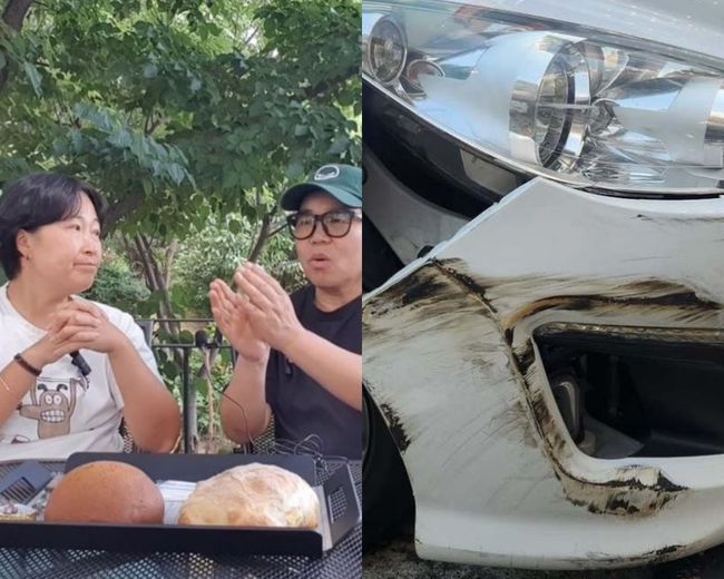 함께 공개한 사진에는 차량 범퍼 내부가 드러날 정도로 파손된 차의 모습이 담겨 눈길을 끌었다.