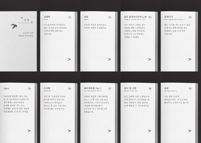 공개된 영상에는 타이틀곡 '꽃이 된 사람'을 포함해 정규 앨범 '또 다른 곳'에 수록된 총 9곡의 음원 일부가 루시드폴의 소개말과 함께 담겼다. 책장을 넘기듯 연출된 화면 구성으로 몰입감을 더했다.