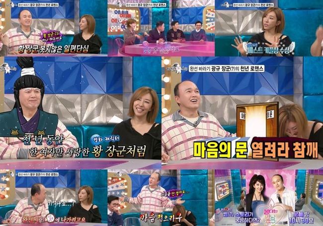 ‘라디오스타’에서 김광규가 김완선을 향한 일편단심을 드러내며 끝없는 썸 플러팅(?)을 펼쳐 스튜디오를 핑크빛으로 물들인다. 끝없이 김완선의 마음을 두드리는 ‘광 장군’ 김광규는 급기야 “열려라 참깨!”라며 노래까지 불러 웃음을 자아낸다.