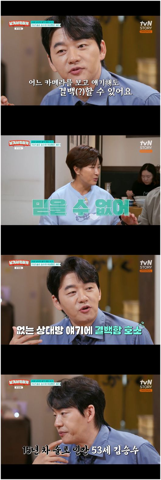 이렇게 스윗한 김승수지만, 그는 솔로 15년 차, 53세 나이에 여태까지 만나본 사람은 고작 5명 이하였다. 김승수는 “저는 오래 만나는 편이다. 아주 짧게 만나도 2년 이상이다”라고 말했다. 박세리 또한 마찬가지라고 맞장구를 쳤다.