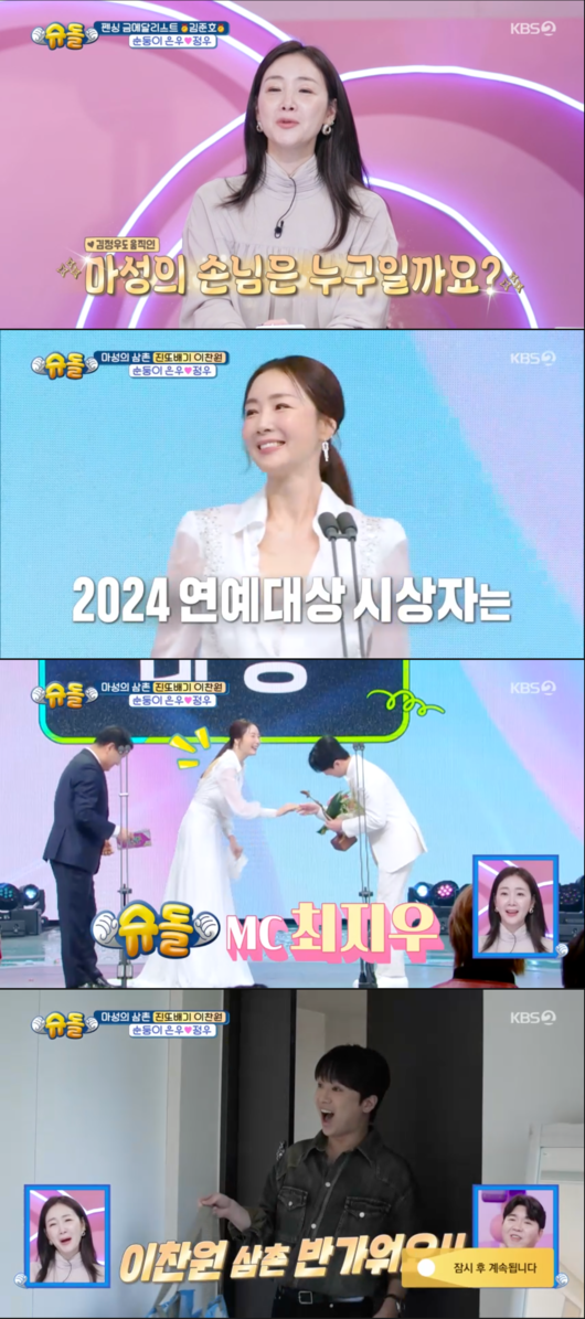 '슈퍼맨이 돌아왔다’ 최지우가 이찬원에게 연예대상을 수여했음을 언급했다.