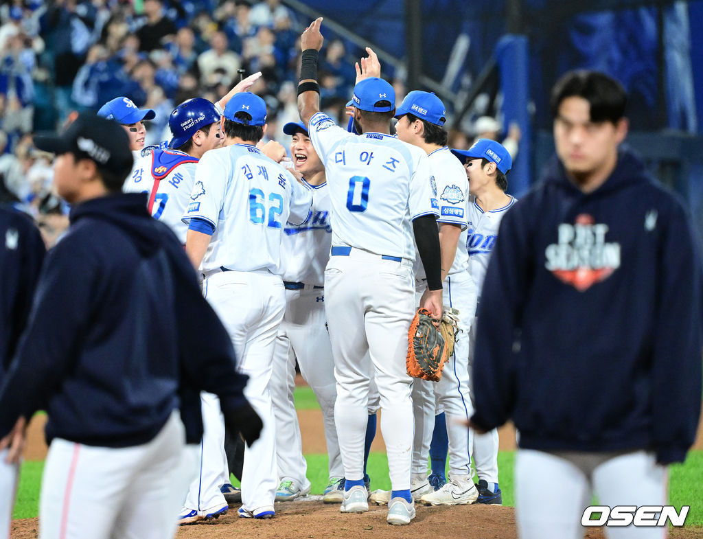 경기를 마치고 승리한 삼성 선수들이 기뻐하고 있다. 2025.10.22 / dreamer@osen.co.kr