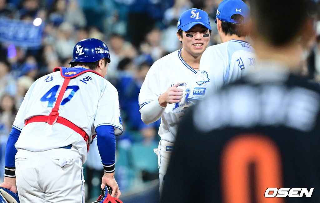 경기를 마치고 승리한 삼성 선수들이 인사를 나누고 있다. 2025.10.22 / dreamer@osen.co.kr