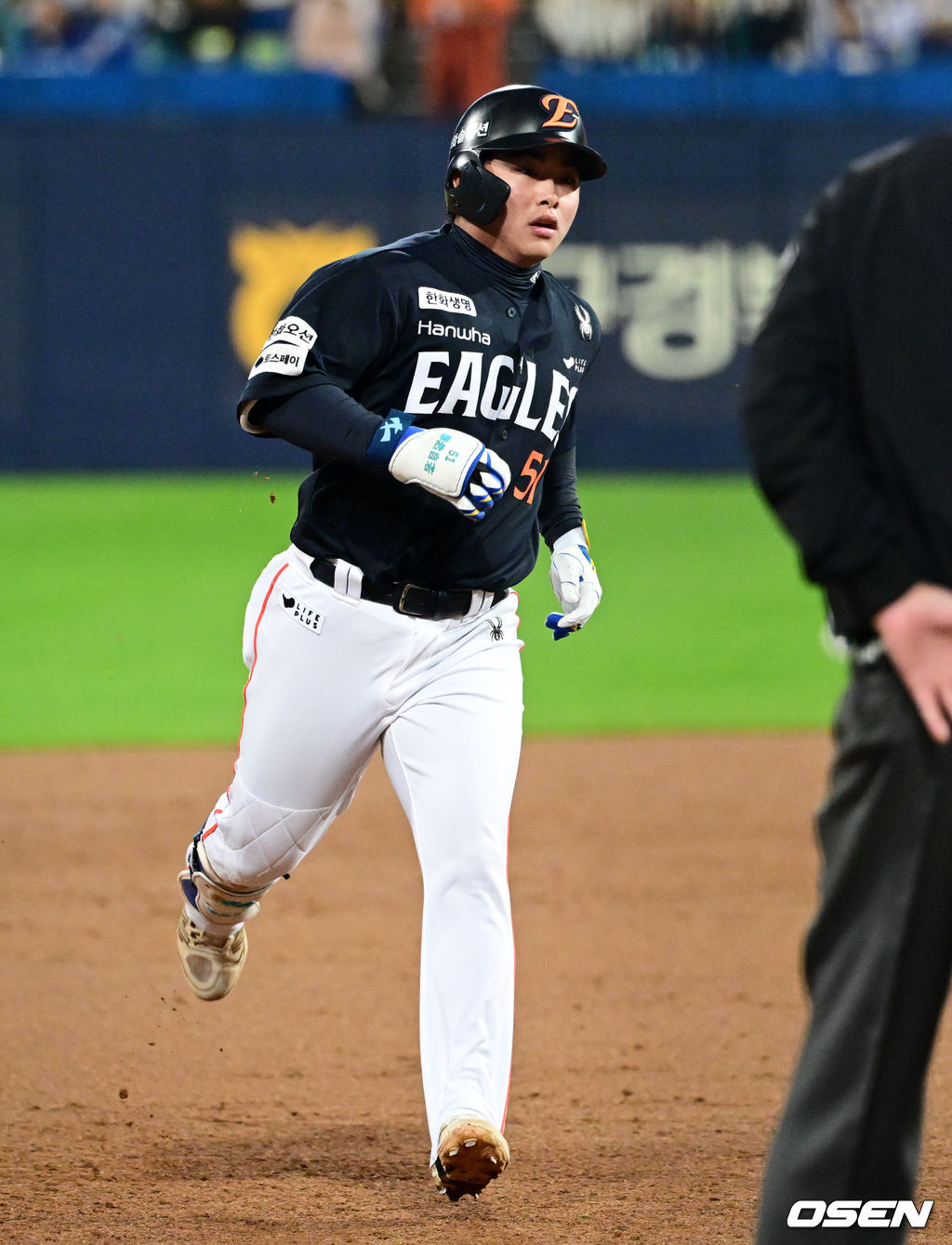 5회초 2사 2,3루 한화 문현빈이 3점 홈런을 날린 뒤 베이스를 돌고 있다. 2025.10.22 /cej@osen.co.kr