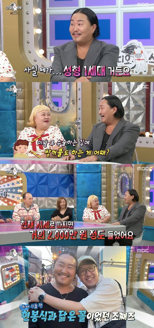 그렇게 코와 쌍커풀 수술을 함께 했다는 조째즈는 “눈은 두 번 집었다. 성형 한번 맛 들이면 빠져나올수없다. 한 번 더 하고 살도 찌면서 자연스럽게 제 것이 됐다”라고 너스레를 떨었다.