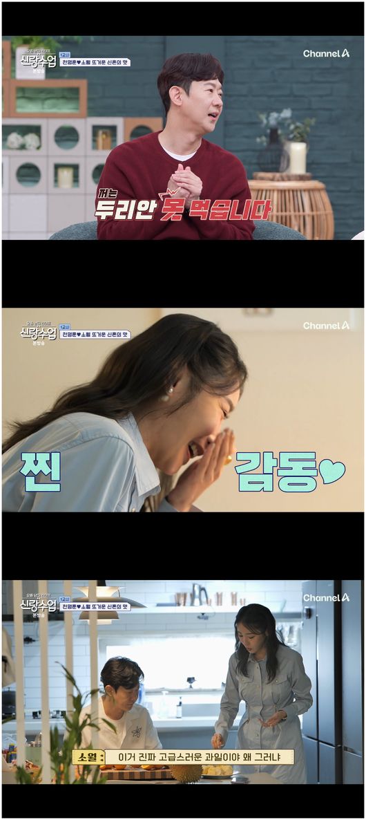 천명훈은 마치 두리안을 자주 먹는 사람처럼 능숙하게 두리안 껍데기를 벗기로 과육을 잘라냈다. 소월은 기뻐하며 두리안을 크게 한입 먹었다. 그는 당연히 천명훈에게도 권했다. 그러나 천명훈의 표정은 어쩐지 좋지 않았다. 천명훈은 “난 사실 두리안을 못 먹는다”, “숨 안 쉬고 먹으면 먹을 수 있다”라며 난색을 표했다. 사랑을 위해 고역을 참아낸 천명훈. 소월은 “한 번 먹어 봐"라며 천명훈을 설득했지만 실패에 그쳤다.