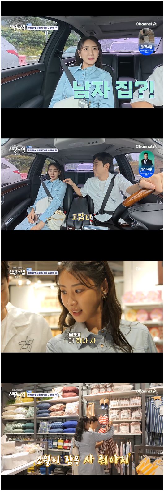 이들은 커튼뿐 아니라 소월의 선택으로 커플 잠옷, 식기, 커트러리 등 커플 세트로 여러 가지를 골랐다. 심진화는 “같이 입고 자는 거 아니어도 같은 걸 입고 잔다는 자체가 참 기분이 좋다”라며 흐뭇해했다. 점원은 “신혼집에 두는 거냐”라고 물었고 천명훈은 “맞다. 잘 살겠다”라며 능청스럽게 말했다.