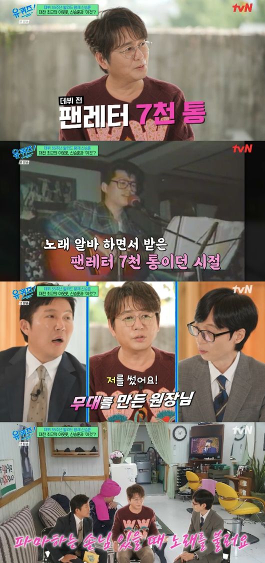 그러자 유재석은 “미용실에서 노래 알바를 했다던데”라고 물었다. 신승훈은 “행사가 아니고 미용실 원장님이 음악을 좋아해서 무대 만들고, 저를 썼다. 파마하는 손님이 있을 때 옆에서 노래를 불렀다”라고 회상했다.