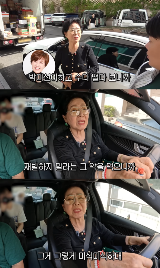 이에 영상 속 피디가 “박미선 씨는 요즘 어떠세요?”라고 묻자, 선우용여는 “괜찮대. 다 나았어. 재발 방지 약을 먹는데, 그게 좀 속이 미식미식하대”라며 후배의 건강을 걱정했다.