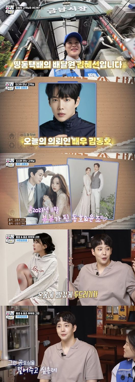 오늘(23일) 오후 5시 30분 방송되는 티캐스트 E채널 '띵동택배'에서는 뮤지컬·드라마·트로트까지 넘나드는 '팔방미인 배우' 김동호가 '열정 배달부' 김혜선과 손잡고 아내 윤조를 위한 비밀 이벤트를 준비한다. 김동호는 지난 2023년 걸그룹 헬로비너스 출신 윤조와의 깜짝 결혼 소식으로 '배우♥아이돌 부부'의 탄생을 알리며 화제를 모았다. 현재 그는 서울의 한 시장 안에서 이색적인 분위기의 선술집을 운영하며 연기·노래·사업까지 섭렵한 '진정한 엔잡러'로 활약 중이다.