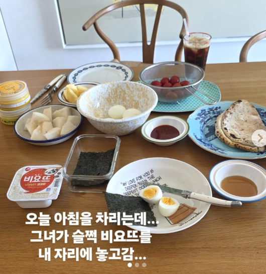 공개된 사진 속에는 달걀과 과일, 김, 그리고 소비기한이 지난 요거트가 함께 놓여 있었다. 박준형은 "오늘 아침을 차리는데 그녀가 슬쩍 비요뜨를 내 자리에 놓고 감.. 사랑인가? 뭐지? 평소에 애들 먹는다고 절대 먹지 말라고 했는데.. 오늘은 10월 22일.. 뭐 그쯤이야.. 내가 먹지 않으면 아무도 먹지 않아"라며 글을 남겼다.